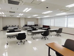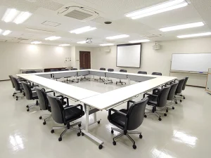 会議室予約 ホーム » 会議室予約-R2 会議室予約 会議室ご利用の流れ 会議室の予約は、オンラインで簡単に行えます。 以下の手順に従って、ご予約ください。 ご利用いただける会議室を 選択してください。 ご利用日時を 選択してください。 必要事項を入力して、 予約を確定してください。 予約が完了すると、ご登録いただいたメールアドレスに予約確認のメールが届きます。変更・キャンセルをご希望の場合は、メールもしくは電話でお問い合わせください。 当社の会議室は、快適な環境で会議やセミナーにご利用いただけます。ぜひ、ご利用ください。 会議室のご案内 R-2番町ビル 〒790-0002 松山市二番町4-5-2TEL 089-931-1181 FAX 089-948-1225 アクセス 第2会議室 【収容人数】32人会場使用料(1時間当り):3,500円 第1会議室 【収容人数】24人(予備6名)会場使用料(1時間当り):3,500円 第1・2会議室 【収容人数】64人(予備10名)会場使用料(1時間当り):7,000円 ご利用時間は、1時間単位、下記時間内でお願いします。[平日] 9:00~21:30 [土日・祝日] 9:00~19:30 第1会議室 (105.00㎡) 【収容人数】24人(予備6名)【設備使用料】マイク:1,000円(1本) 【設備内容】マイク:ワイヤレス1本、ホワイトボード 【キャンセル料】ご利用日の2日前から前日30%ご利用日当日50% 予約する 第2会議室 (95.90㎡) 【収容人数】32人【設備使用料】マイク:1,000円(1本)プロジェクター:5,000円(1台) 【設備内容】マイク:ワイヤレス2本、有線式2本、ホワイトボード、Wi-Fi使用可能 【キャンセル料】ご利用日の2日前から前日30%ご利用日当日50% 予約する 第1・2会議室 (200.90㎡) 【収容人数】64人(予備10名)【設備使用料】マイク:1,000円(1本)プロジェクター:5,000円(1台) 【設備内容】マイク:ワイヤレス2本、有線式2本、ホワイトボード2台、Wi-Fi使用可能 【キャンセル料】ご利用日の2日前から前日30%ご利用日当日50% 予約する ※消費税は別途となります。 会員について 会員とは、四国労働金庫の出資会員で、割引料金が適用されます。 第1または第2会議室:2,500円/時、 第1・2会議室:5,000円/時